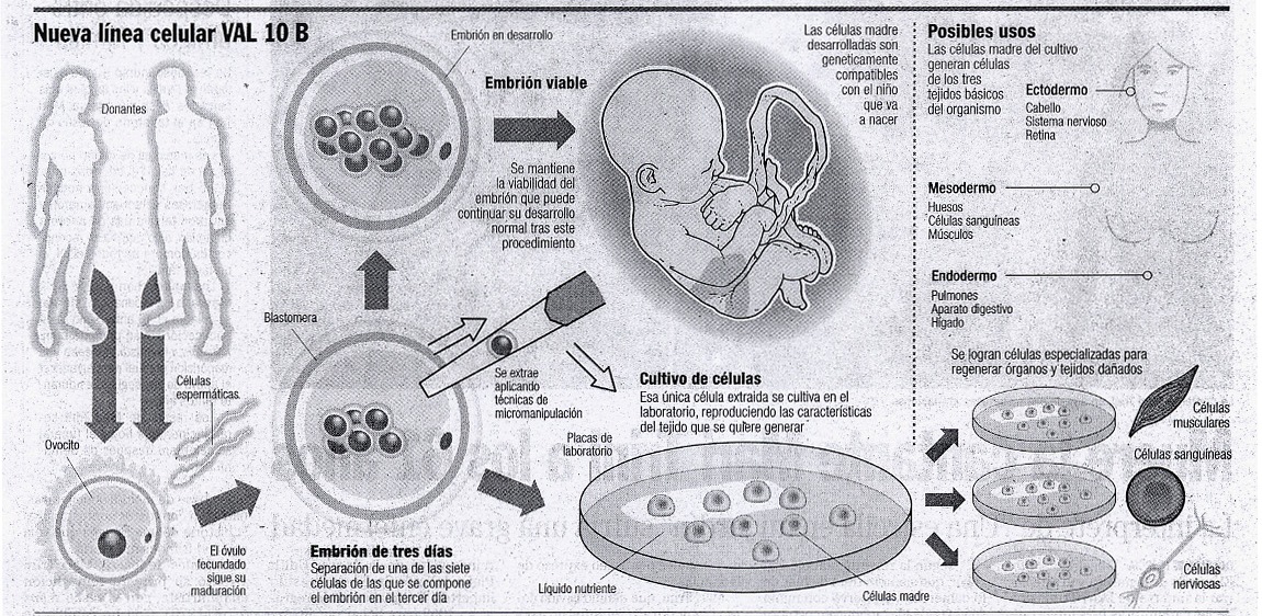 En pleno debate parlamentario del aborto, que se ha convertido en motivo de conversaciones y debates en muchos foros, aparece la noticia de que las células madre se pueden obtener sin destruir el embrión del que se extraen. Todos los que siempre han puesto impedimentos para investigar, los que criticaron a la ciencia porque de un recién nacido se extrajo las células madres necesarias para curar a su hermano mayor, se supone que ahora no tendrán motivo para criticar la investigación con células madre. Soy demasiado optimista, me temo.